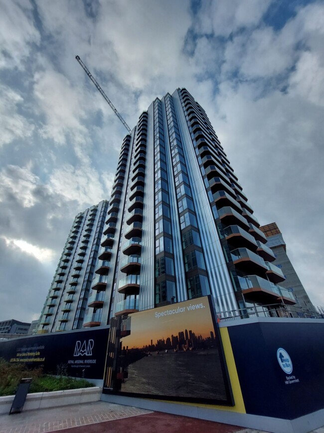 Construction is progressing well for Royal Arsenal Phase A-Blocks. Phase 10 consists of one 21-storey block and one 17-storey block A3 & A4, consisting of 271 flats, ranging from 1 to 3 beds. The building includes a basement car park with a connection to a high-efficiency district heating system, modular components, efficient Mechanical ventilation, load management electrical car charging points and wireless access control systems. Construction is set to complete by August 2023.