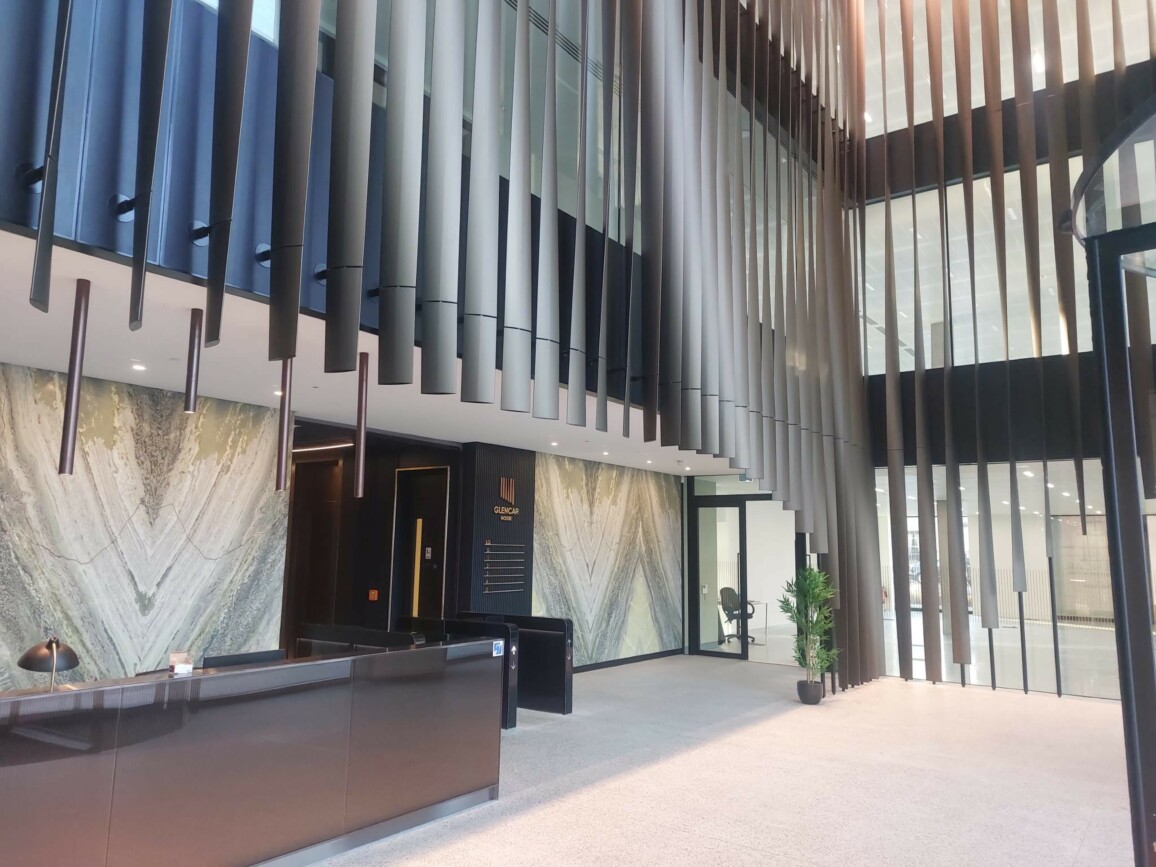Glencar House stands as a paragon of structural artistry and architectural finesse, comprising a robust double-storey basement and five generous floors above ground level. Its striking precast concrete facade, impeccably realised by Techcrete, is both a visual and structural marvel.