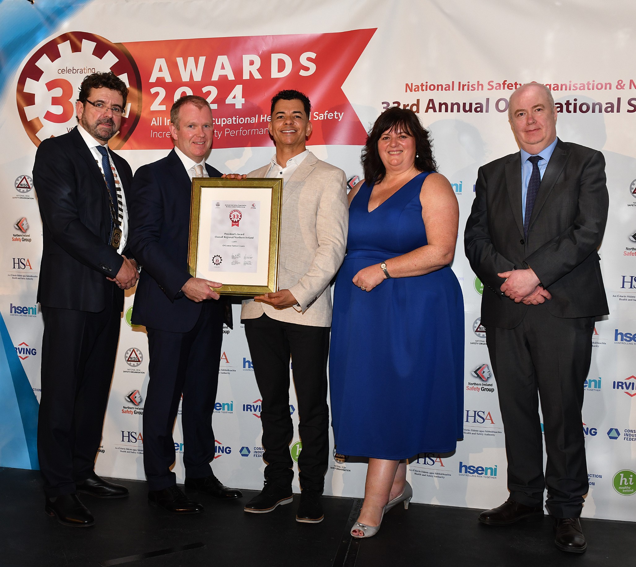 We are delighted to share that O’Connor Sutton Cronin was recognised for our commitment to safety with the Exceptional High Achiever Award (Ireland) and the President’s Award (Overall Regional/Northern Ireland) at the NISO/NISG All Ireland Safety Awards 2024, held last Friday, 11 October 2024, at the Great Southern Killarney, Co. Kerry.