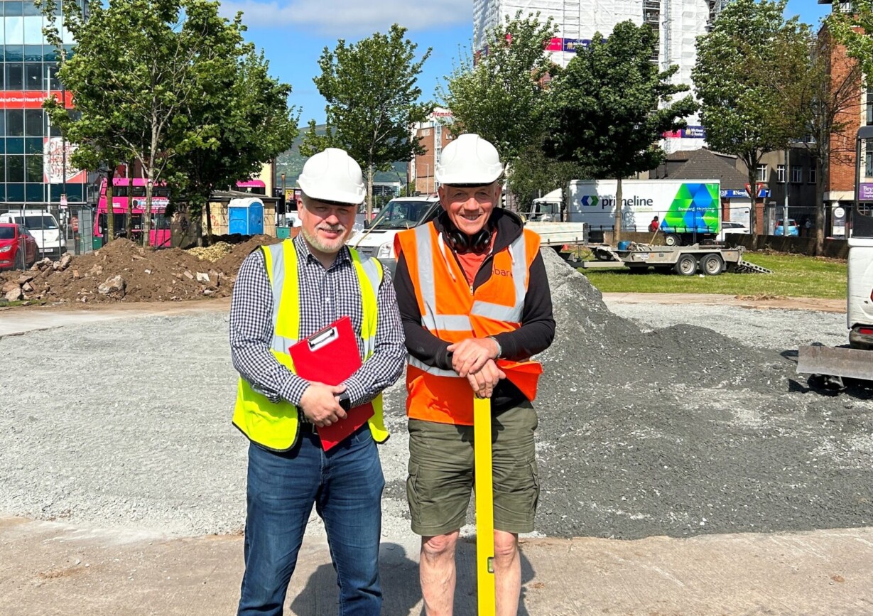 OCSC’s Thomas Johnston and Noel Ellison of (OBARO) were on-site at Bankmore Square this morning. The purpose of their visit was to oversee the start of work to rejuvenate Bankmore Square (Belfast) and upgrade it as a public space. Some changes are already visible along the Bedford St boundary. OCSC is providing Civil, Structural, and Electrical Consulting services on this project.