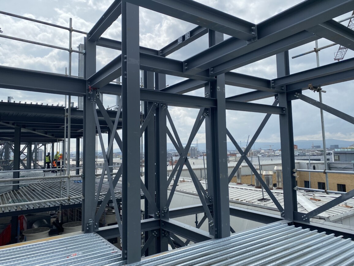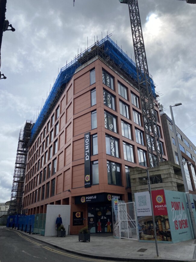 We are delighted to share that there has been significant progress made in the construction of two additional floors (804m²) on top of an existing seven-storey hotel building, resulting in a nine-storey building with a total gross floor area of 4,857m² at Point A Hotel, Parnell Street, Dublin 1.