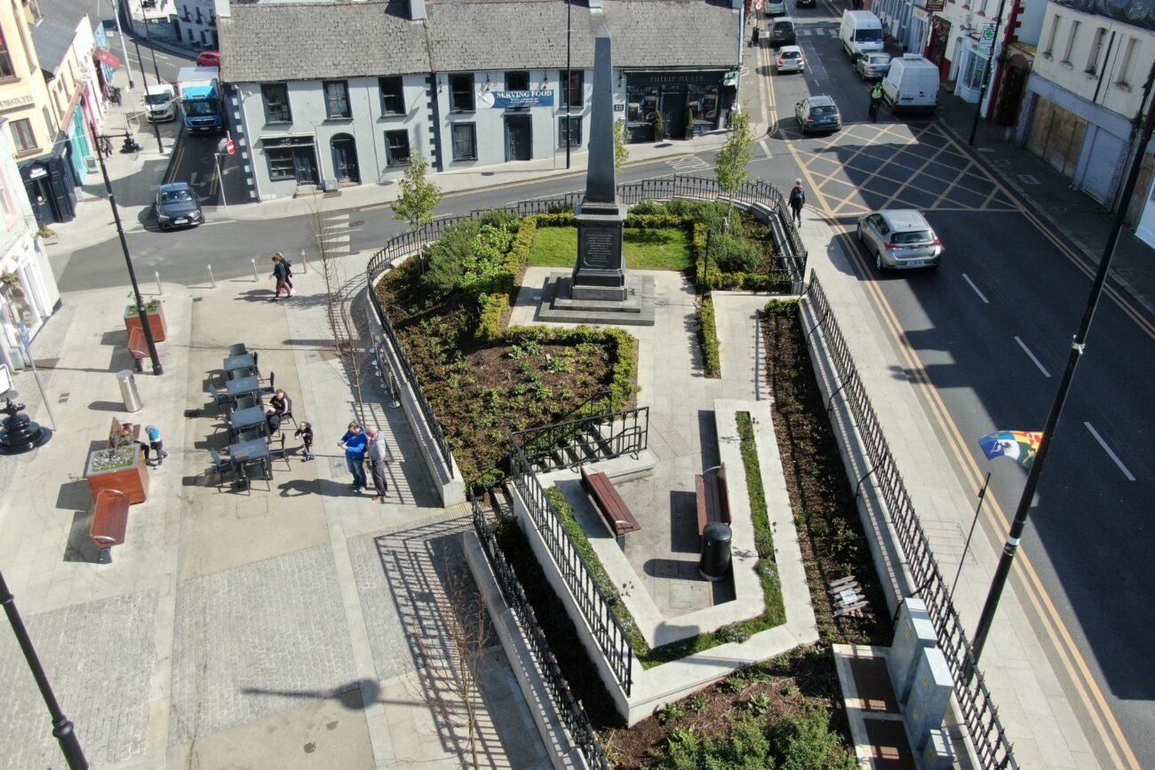 The Fitzwilliam square project was developed to improve the aesthetics of the Wicklow Town center while also complimenting the historic importance of the Halpin monument and railings surrounding the green space. The extent of the scheme extends along Abbey Street (from the entrance to the public car park at AIB Bank) to Fitzwilliam Square and its junctions with Church Street, Bridge Street, and Main Street.