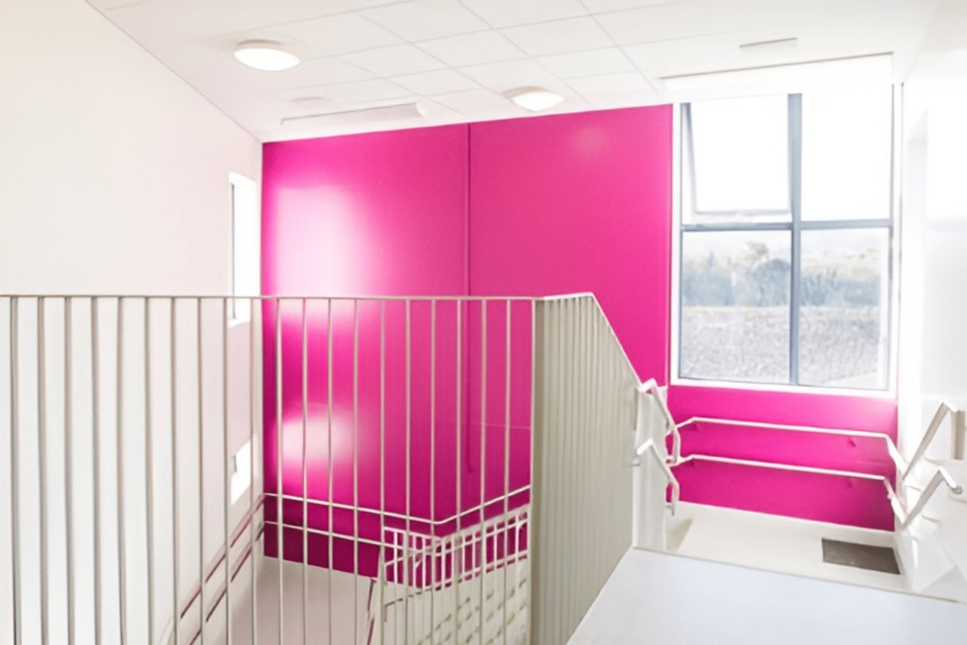 - The building included a number of external terraces and link corridors requiring the structural frame design to incorporate thermal breaks to minimise heat loss. A
