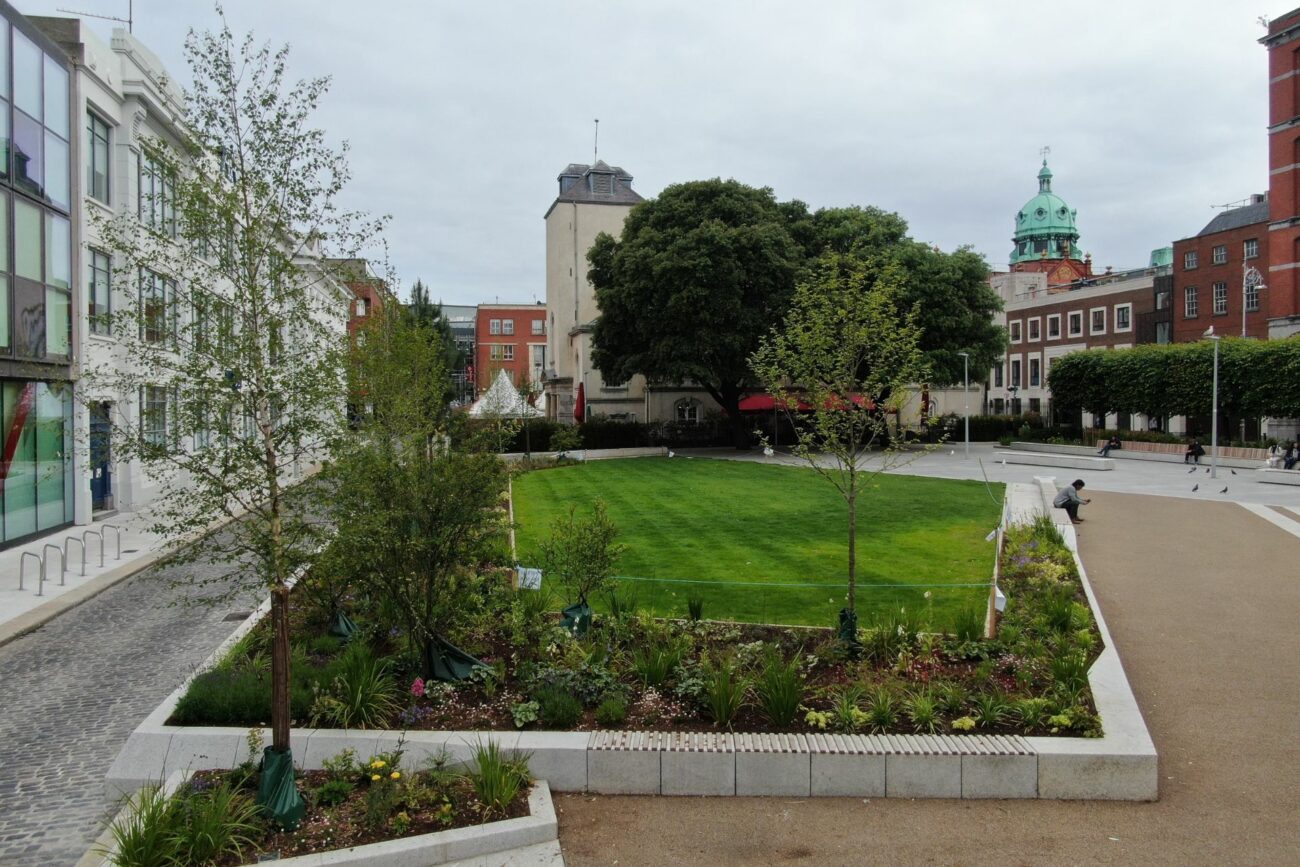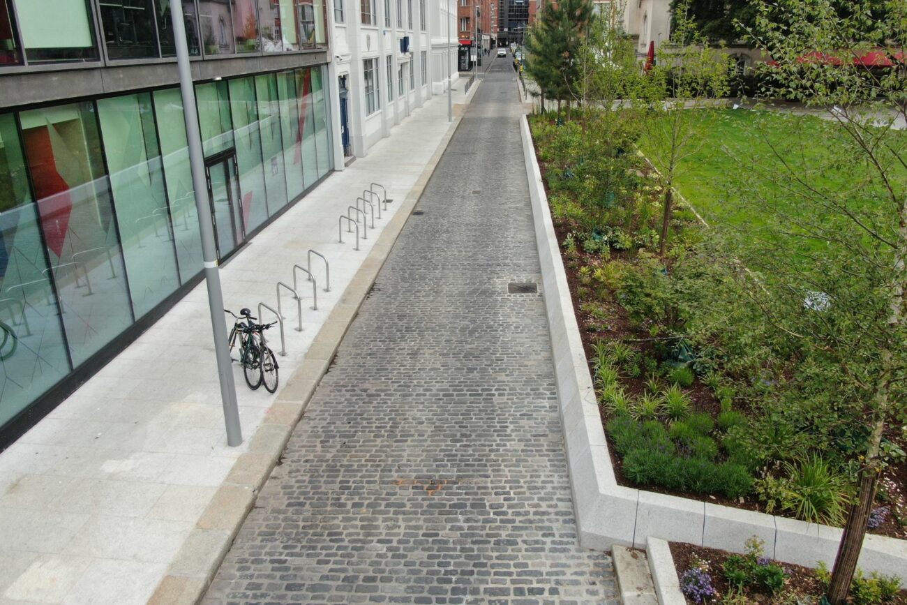- The finishes to the scheme included the installation of antique natural stone cobbles along Wolfe Tone Street, reclaimed granite curbing, and new Leinster paving to uplift and enhance the area.