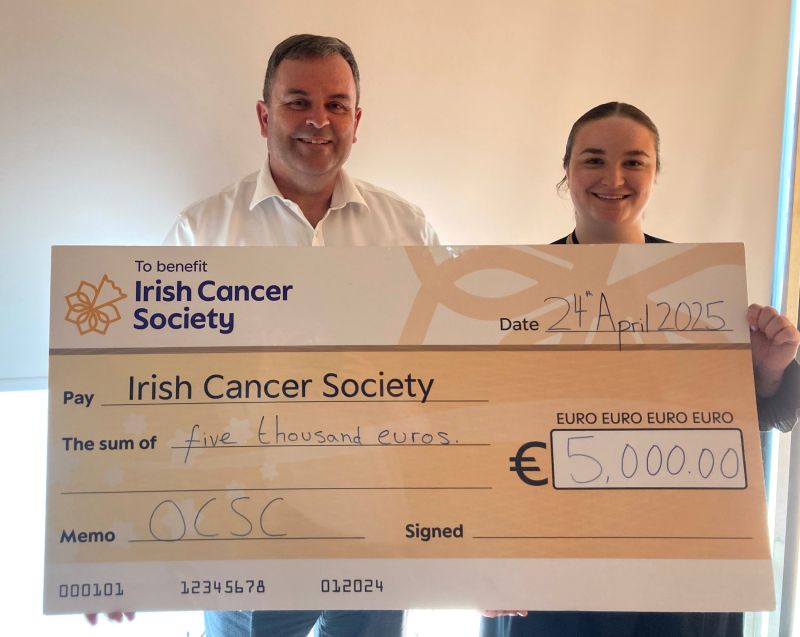 O’Connor Sutton Cronin is proud to announce its corporate partnership with the Irish Cancer Society. Yesterday, Martin McGrath, OCSC’s Group Managing Director, presented a cheque to Katrina Yoder from the Irish Cancer Society. This highly respected organisation comprises patients, survivors, volunteers, supporters, care professionals, and researchers. Together, they work tirelessly to improve the experiences and outcomes for individuals affected by cancer through advocacy, support services, and research.